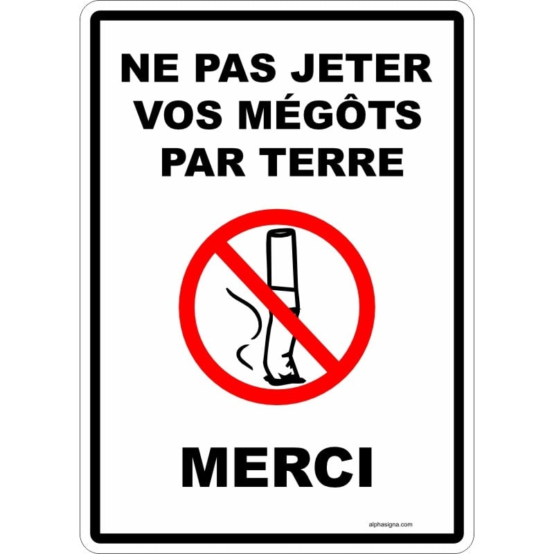 Affiche interdiction : Ne pas jeter vos mégots par terre