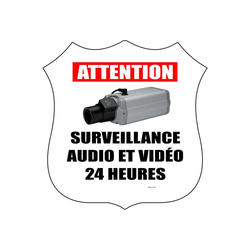 • Affiche standard pour système de caméra de surveillance vidéo et audio 24 heures, en forme de bouclier